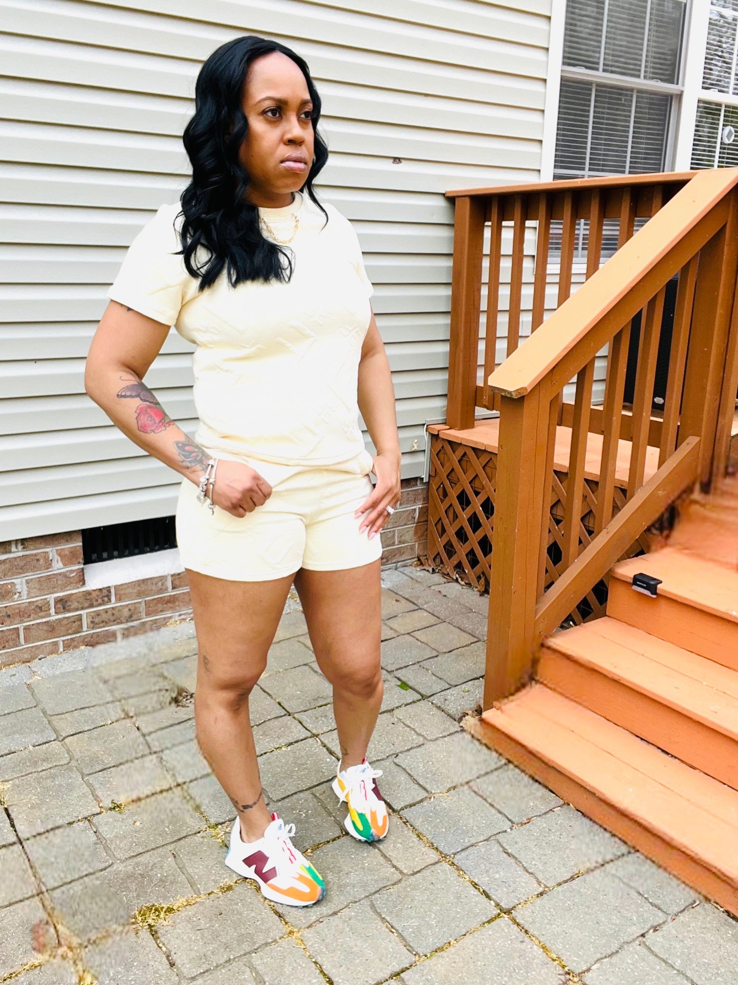 Crew Neck Short Sleeve Top, Elastic w/Pockets Shorts