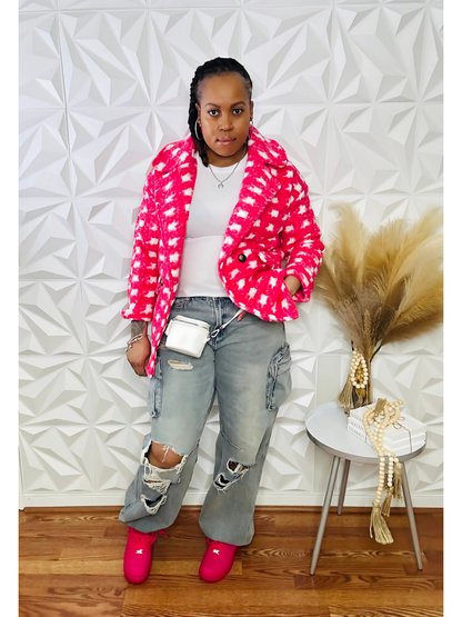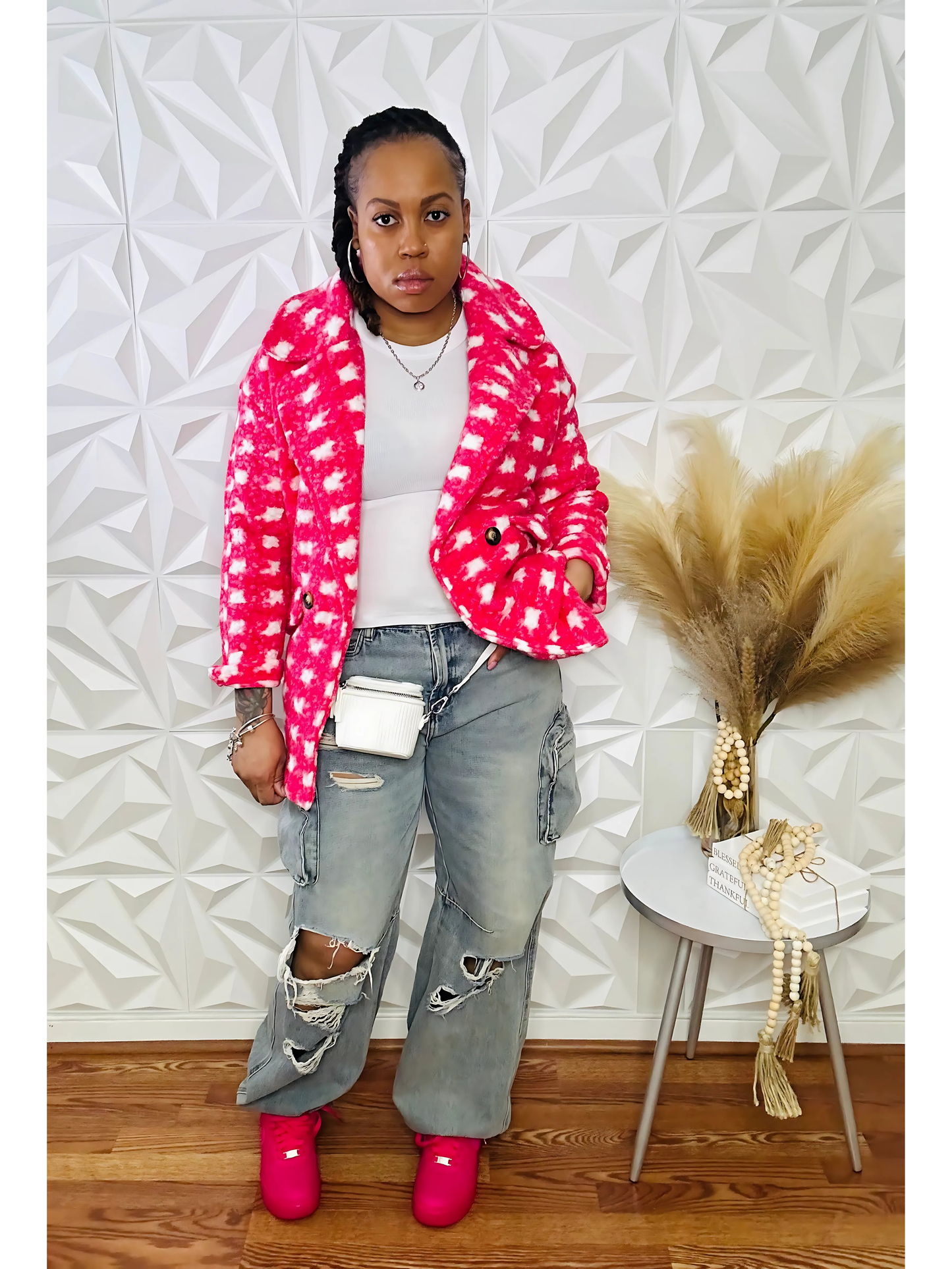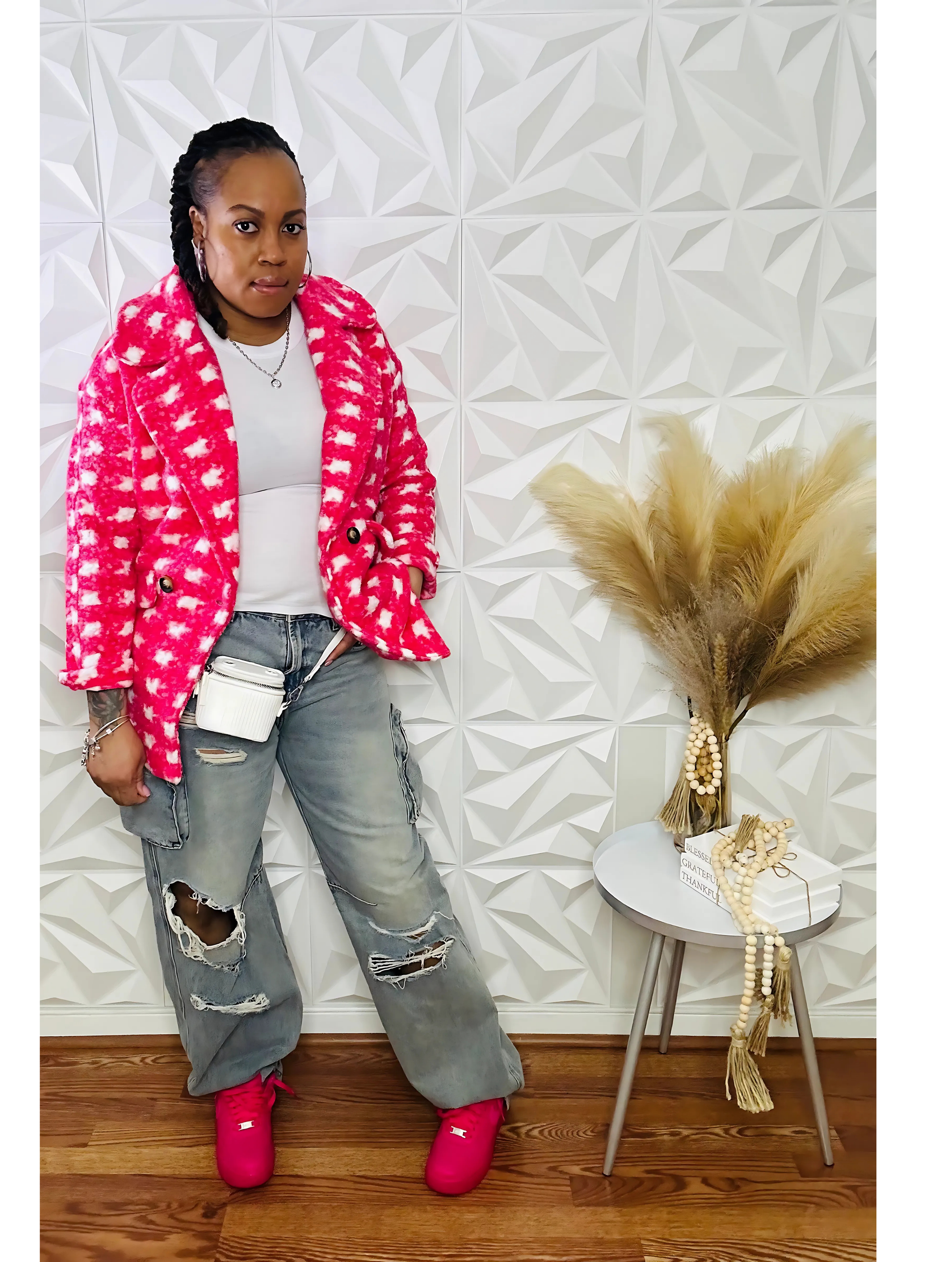 Blush Luxe Double-Breasted Bouclé Hot Pink Coat -Size Medium Only