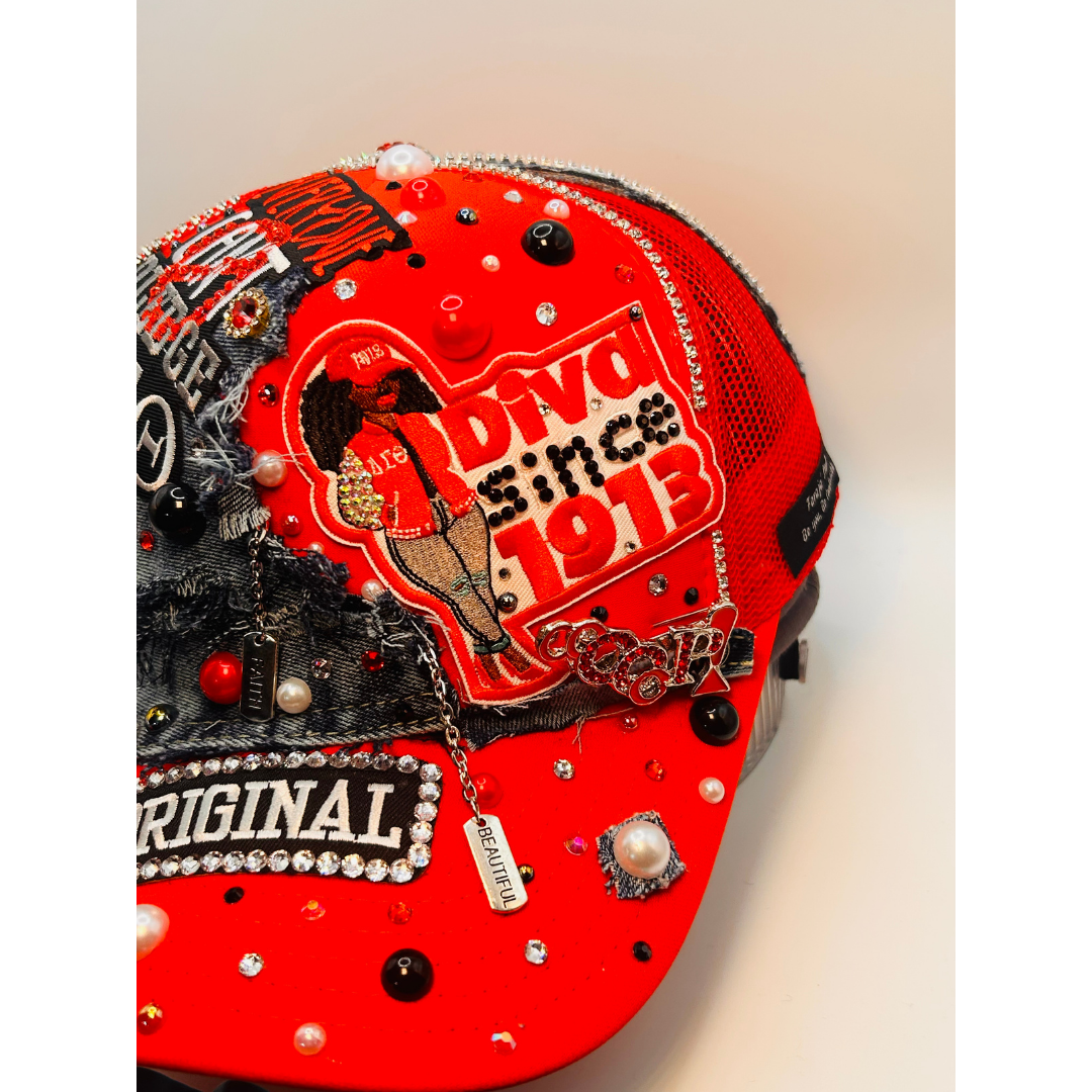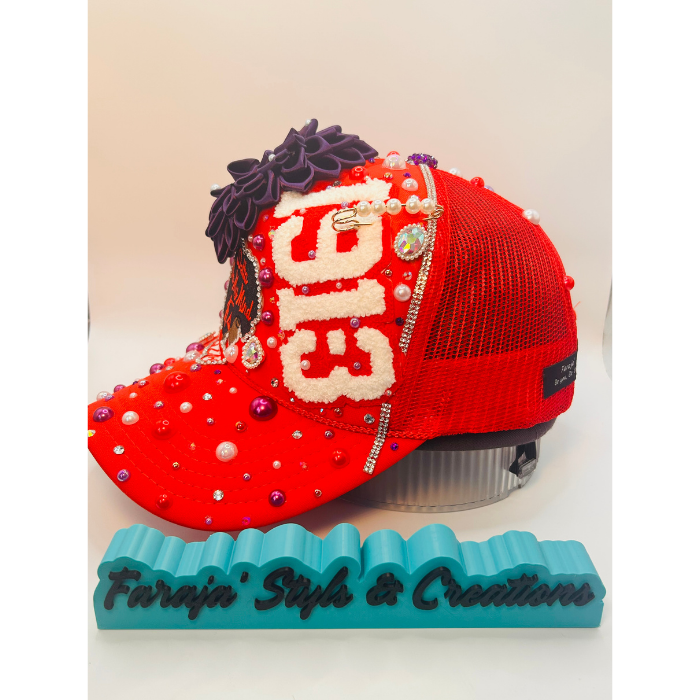 Show your Greek pride in style with this Custom Sorority Trucker Junk Hat 💕 Each hat is hand-decorated with rhinestones, pearls, patches, and denim accents for a bold, one-of-a-kind look. Perfect for Greek Week, strolls, or everyday glam, no two hats are alike—just like you!