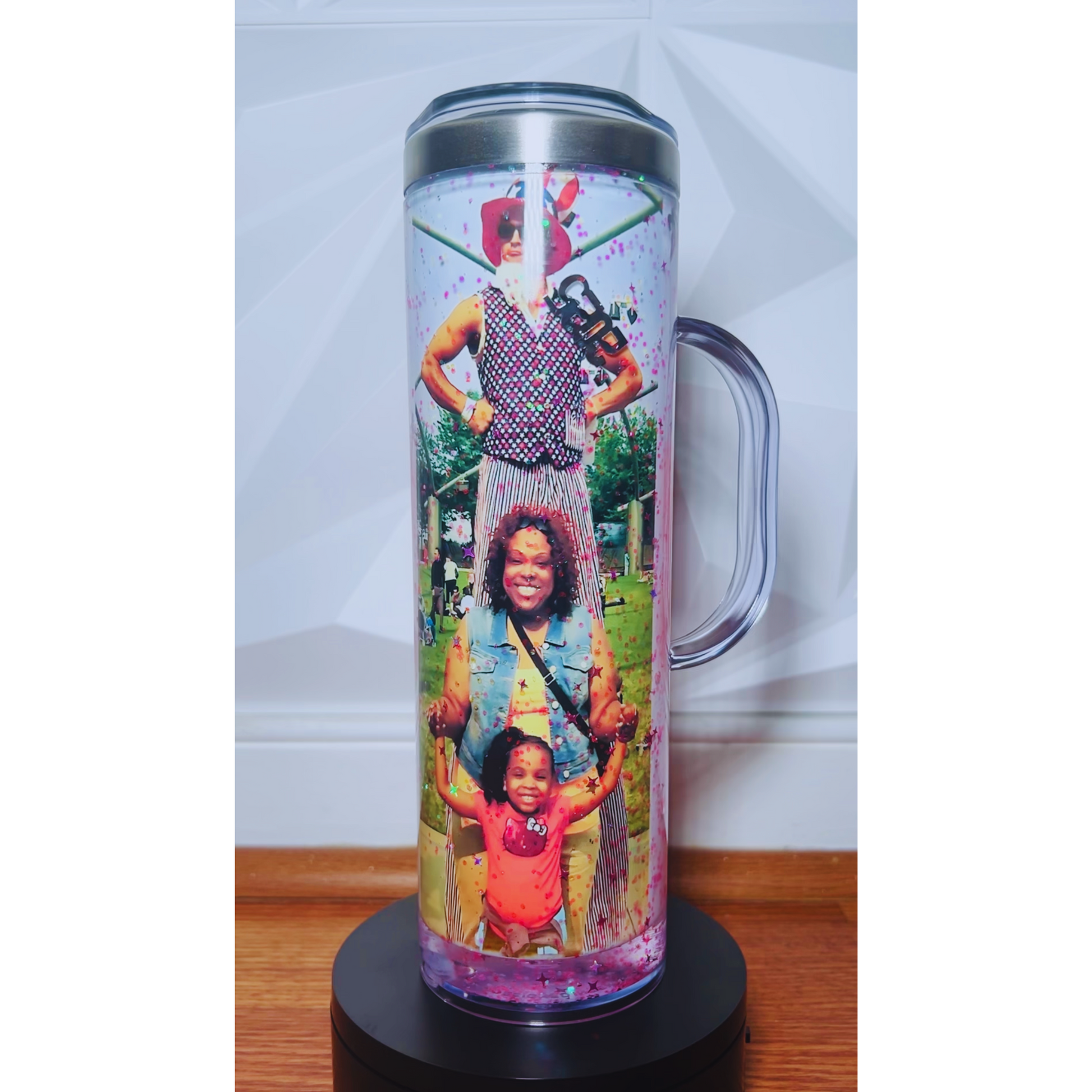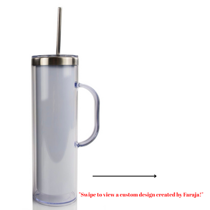 Custom 20 oz Straight Sublimate Skinny Snow Globe Tumbler w/ Handle
