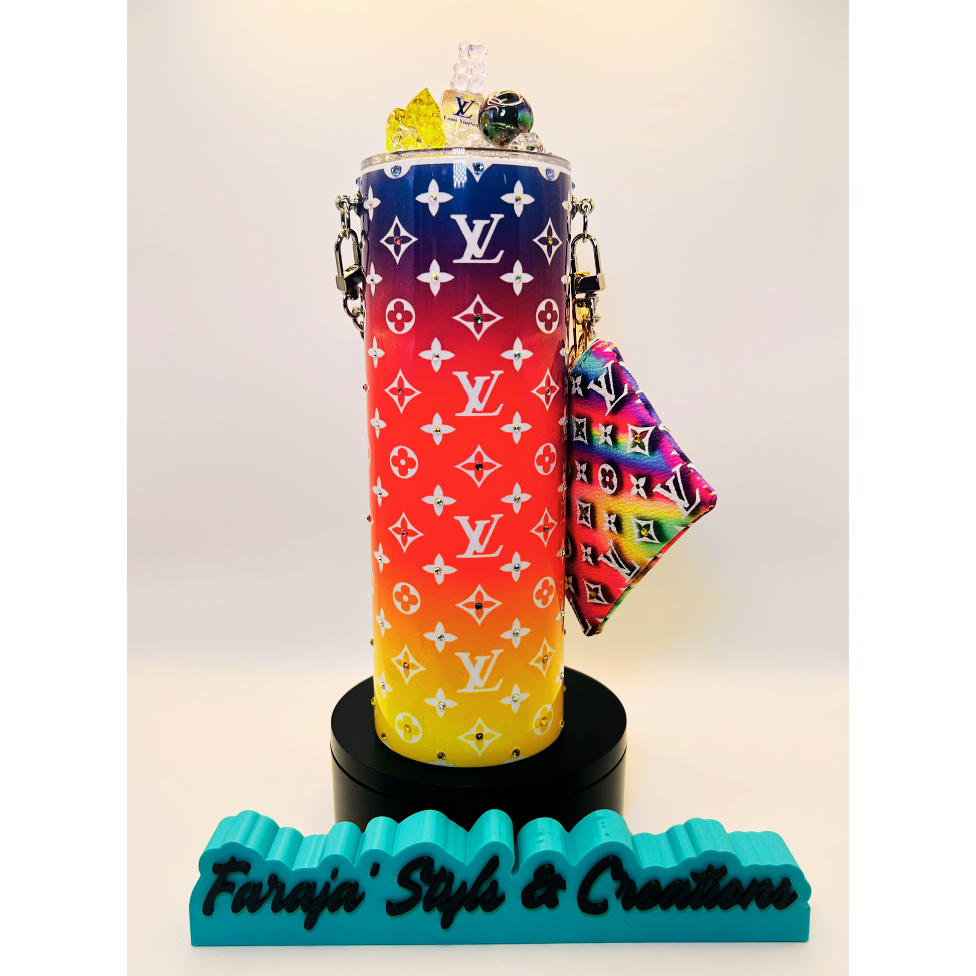 20oz Luxury Rhinestone Tumbler Set | Iced Charmed Topper & Matching Coin Purse | Designer-Inspired